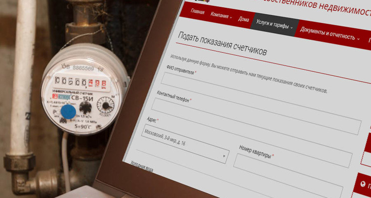 Теперь передать показания счетчиков воды и электричества можно передать с помощью сайта. Кнопка в правом меню "Передать показания счетчиков".