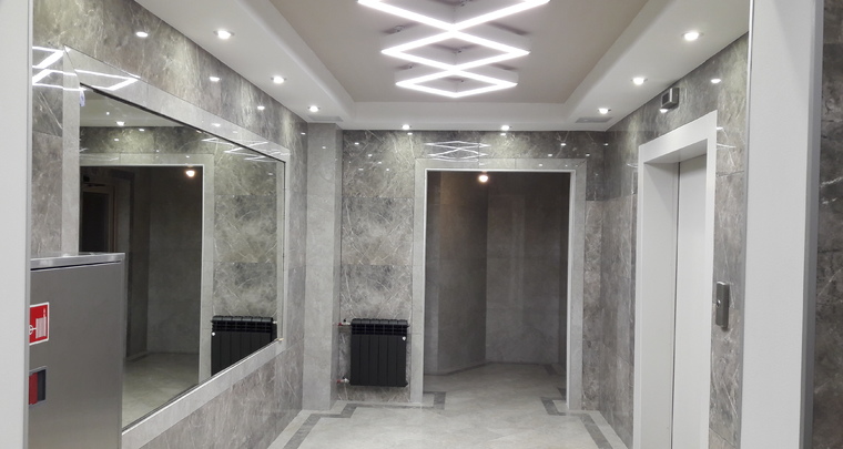 -полностью отремонтирована входная группа 1 этажа, пол, стены, потолок